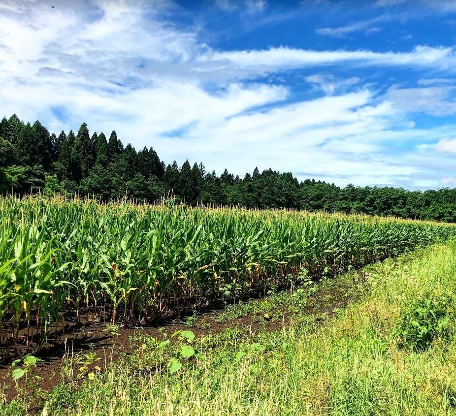 圃場の栽培は とうもろこし。牧場で育てている 牛に食べさせる為に育てているとの事です。